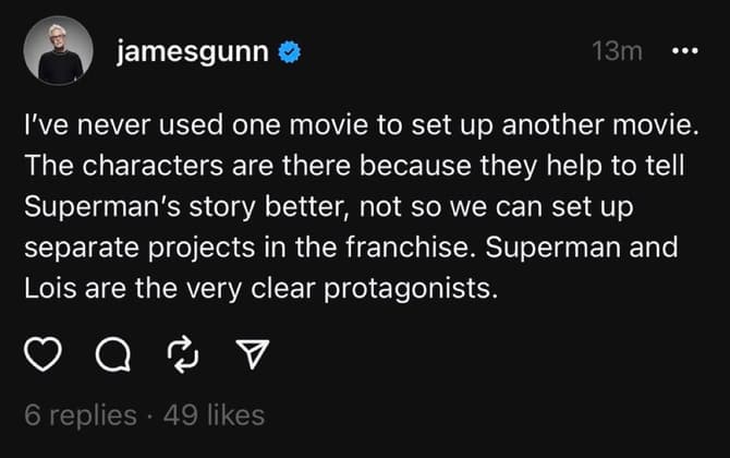 גאן גם טוען שכל הדמויות האלו הן לא כדי לעשות מארוול ולתת להם בסיס לסרטים נפרדים, אלא חלק אינטגרלי מהסיפור של סופרמן בסרט: